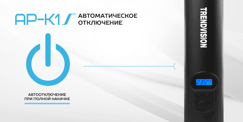 Автоматическое отключение значительно упрощает процесс подкачки шин. Теперь вам не нужно самостоятельно следить за тем, чтобы давление в шинах было одинаковым. Компрессор TrendVision AP-K1 сделает это за вас. Как только достигнет выставленного значения, он тут же прекратит подкачку.