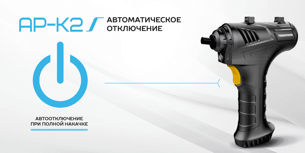 Автоматическое отключение значительно упрощает процесс подкачки шин. Теперь вам не нужно самостоятельно следить за тем, чтобы давление в шинах было одинаковым. Компрессор TrendVision AP-K2 сделает это за вас. Как только достигнет выставленного значения, он тут же прекратит подкачку.