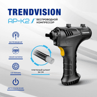 TrendVision AP-K2 - это беспроводной портативный автомобильный компрессор, мощностью 50 Вт, с батареей емкостью 2000 мАч и автоматическим выключением по достижении заданного давления. Максимальное давление выдаваемое компрессором - 150 PSI или 10 BAR. Компрессор оснащен LED фонарем и LCD дисплеем для более точных показаний.