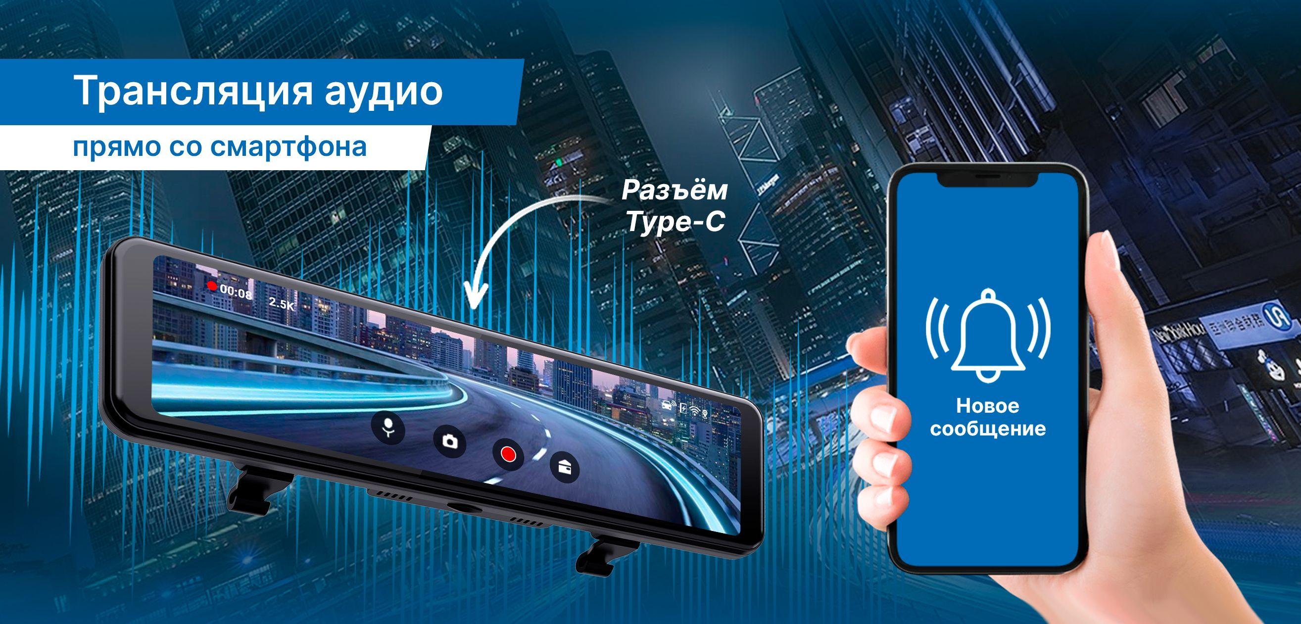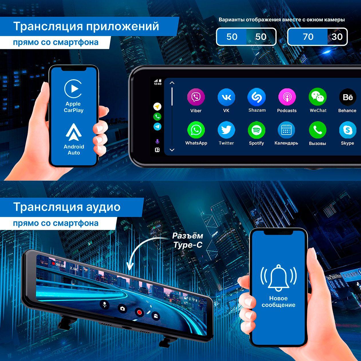 - Техологии "Apple CarPlay" и "Android Auto" (для транслирования приложений со смартфона на зеркало)