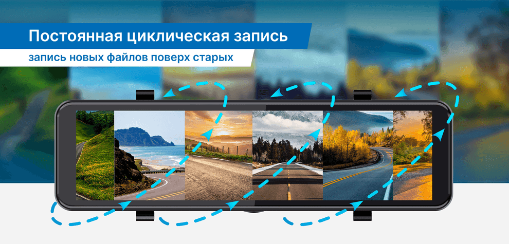 На устройстве производится циклическая запись роликов. Это исключает необходимость постоянно стирать ненужные файлы с аппарата, чтобы карта памяти не переполнялась. В TrendVision CarPlay Mirror, при заполнении карты памяти, все новые ролики просто будут записываться поверх старых.