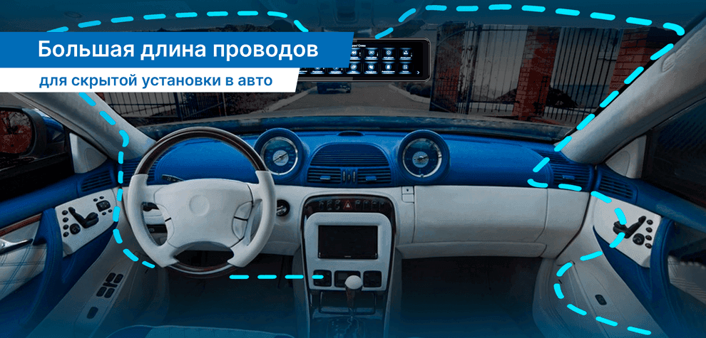 Провод задней камеры и провод питания (с разъёмом Type-C) обладают оптимальной длиной проводов для возможности скрытно провести их по скрытым областям автомобиля (под обшивкой, стойкой и т.д.). Таким образом сам видеорегистратор-зеркало и задняя камера будут выглядеть в машине, как штатные.
