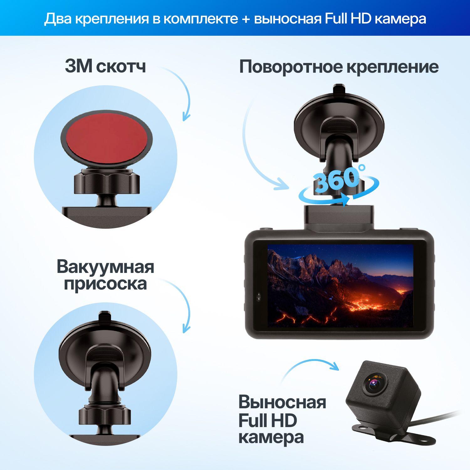 Видеорегистратор с реальным разрешением 4К Ultra HD, управлением через смартфон) и встроенным GPS-информером. Задняя Full HD камера в комплекте