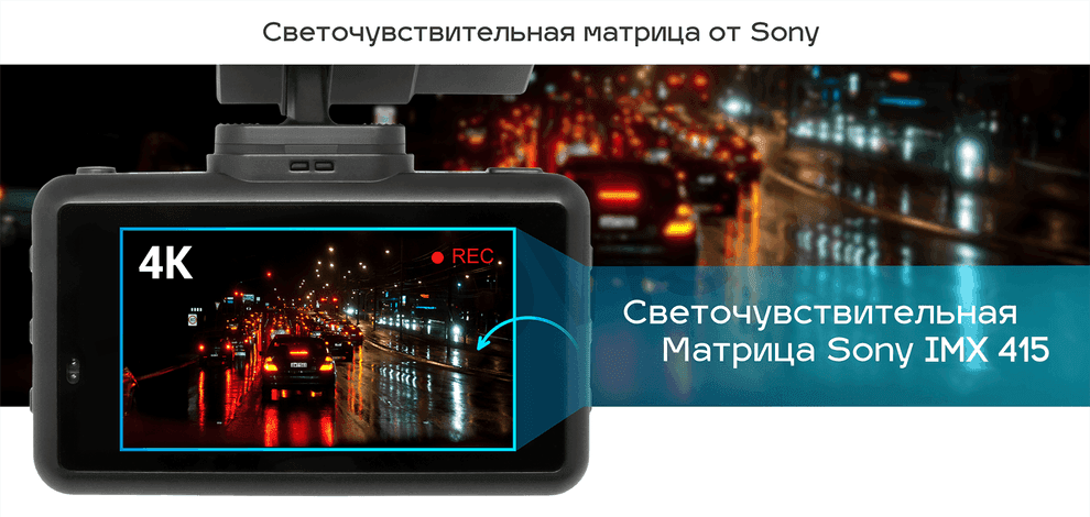 Аппарат оснащён матрицей SONY STARVIS IMX415 – одной из лучших на рынке авторегистраторов на 2022-2023 год! Устройство снимает в реальном разрешении 4K Ultra HD, без интерполяции. Качество картинки достигает той степени, при которой днём и ночью, в дождь и солнце, аппарат не теряет ни единой детали происходящего на дороге – всегда четко видны номера машин, знаки дорожного движения и даже, в отдельных случаях, лица людей.