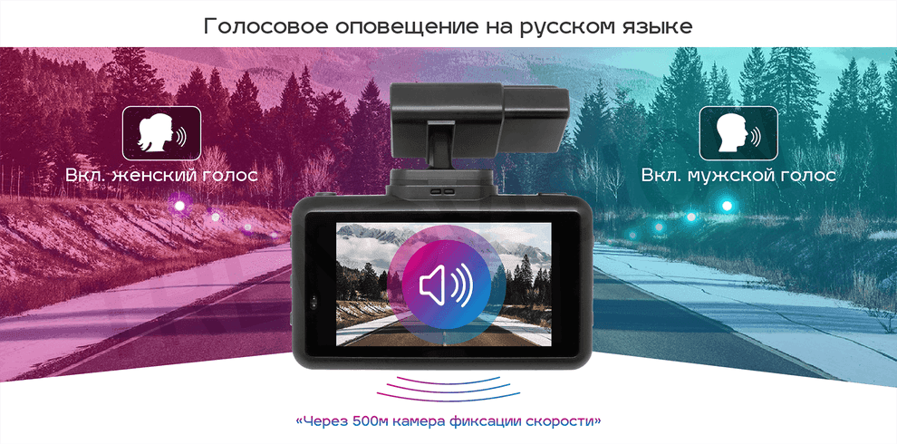 Предупреждения о радарах и камерах производится не только посредством уведомления на экране, но и своевременного предупреждения голосовым помощником. В настройках аппарата можно выбрать мужской или женский голос.