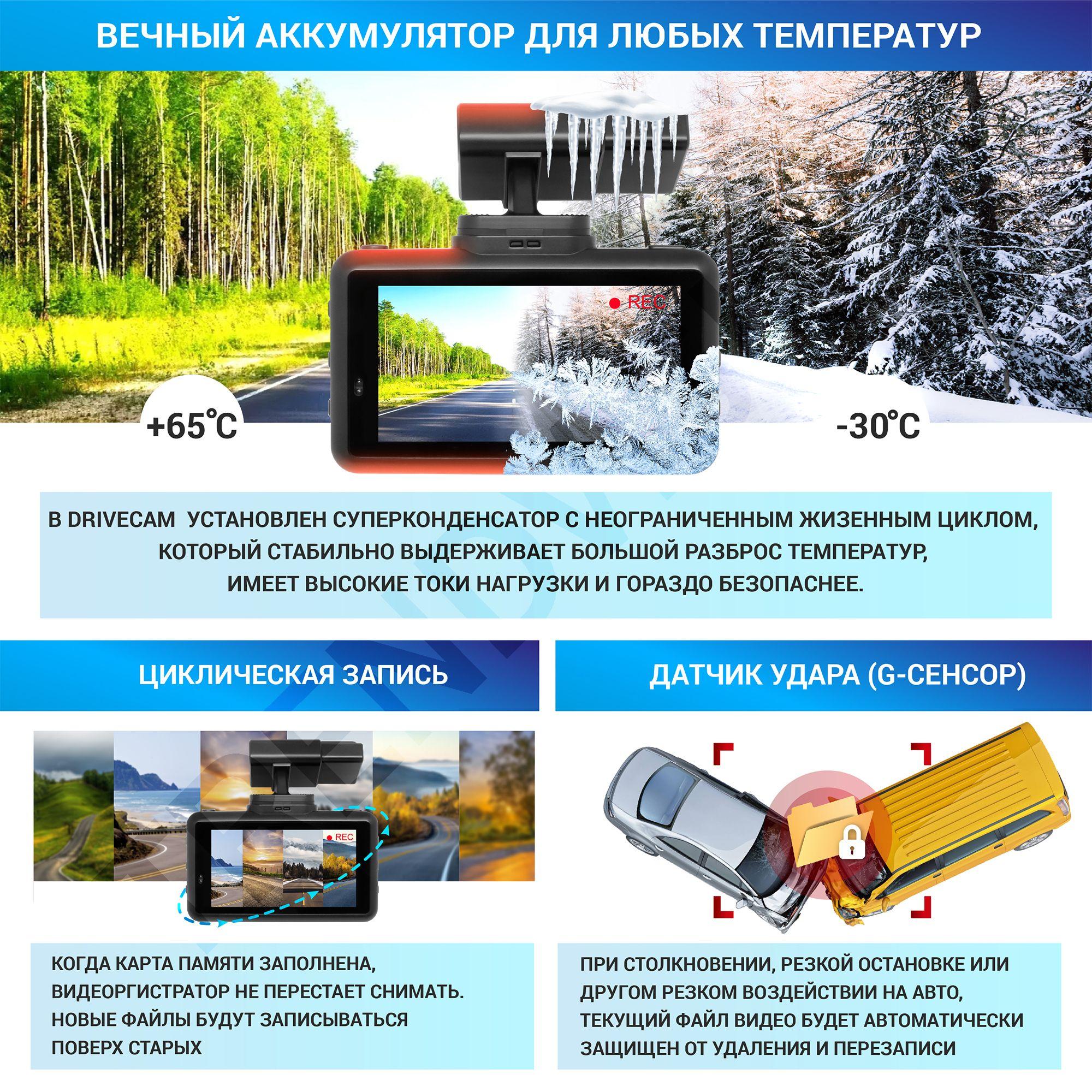 Вместо стандартного литиевого аккумулятора в TrendVision DriveCam Real 4K Signature установлен суперконденсатор. Он стабильно выдерживает гораздо больший разброс температур, имеет высокие токи нагрузки, а также гораздо более безопасен (исключает перегрев, взрыв, сбои питания). У суперконденсатора практически неограниченный жизненный цикл – он может быть перезаряжен несколько десятков тысяч раз.
