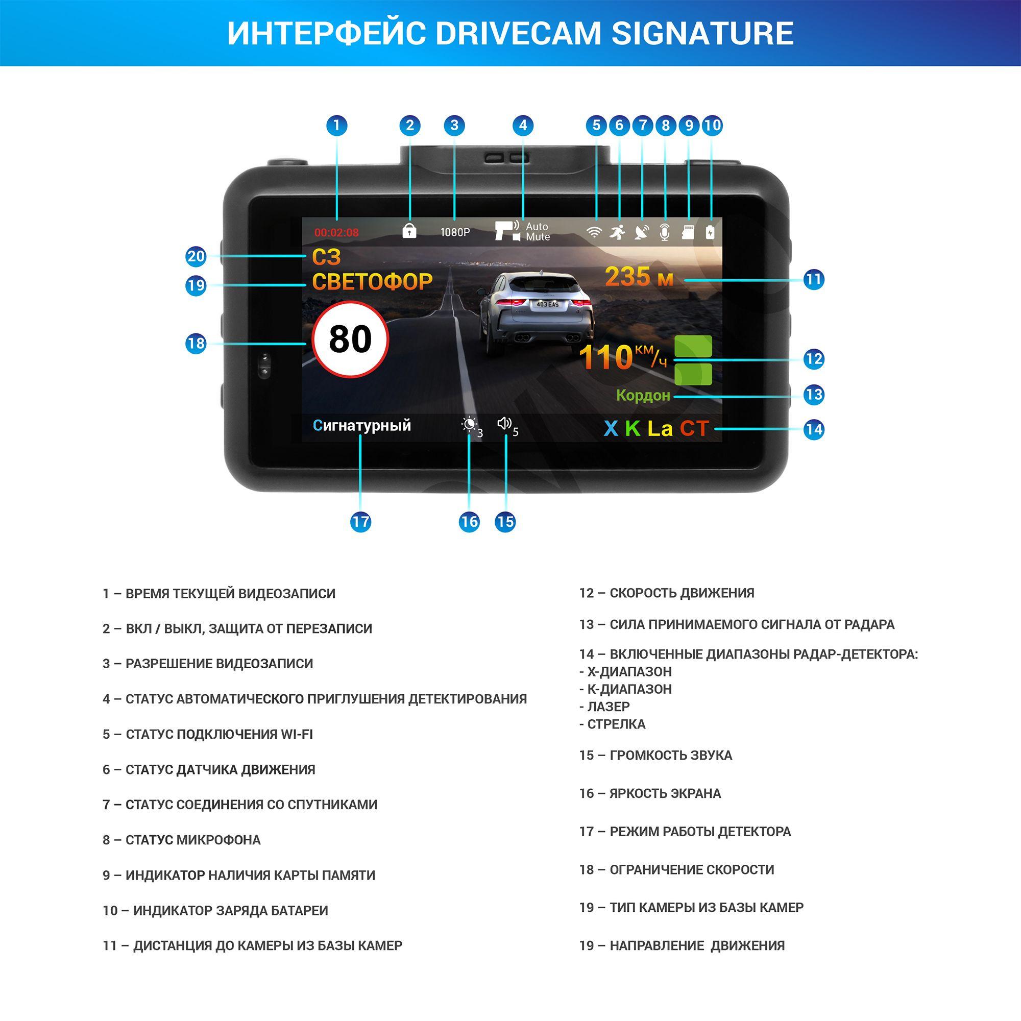 Благодаря сигнатурному радар-детектору, TrendVision DriveCam Real 4K Signature способен распознать сигналы по названию радарных излучателей, а так же в диапазонах (K, X, Лазер и Стрелка), в которых работают все радарные комплексы на дорогах России и стран СНГ. Перед оповещением о радаре устройство фильтрует сигнал, исключая посторонние радиошумы, исходящие от дверей или круиз-контроля автомобилей. Благодаря данной сигнатурной системе исключаются всевозможные ложные срабатывания.