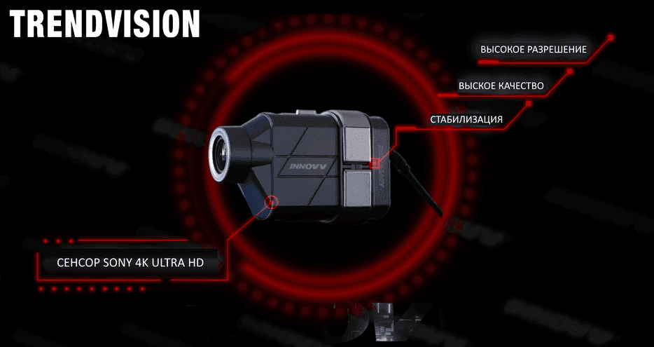 Для обеспечения максимально качественного видео в разрешении ULTRA HD 4K в TrendVision INNOVV H5 используется сенсор SONY и высокопроизводительный процессор A7. Встроенная технология стабилизации изображения позволяет получать камере справляться при езде по любым дорогам или, например, при беге человека. За запись четкого звука отвечает чувствительный микрофон, который можно установить внутрь шлема.