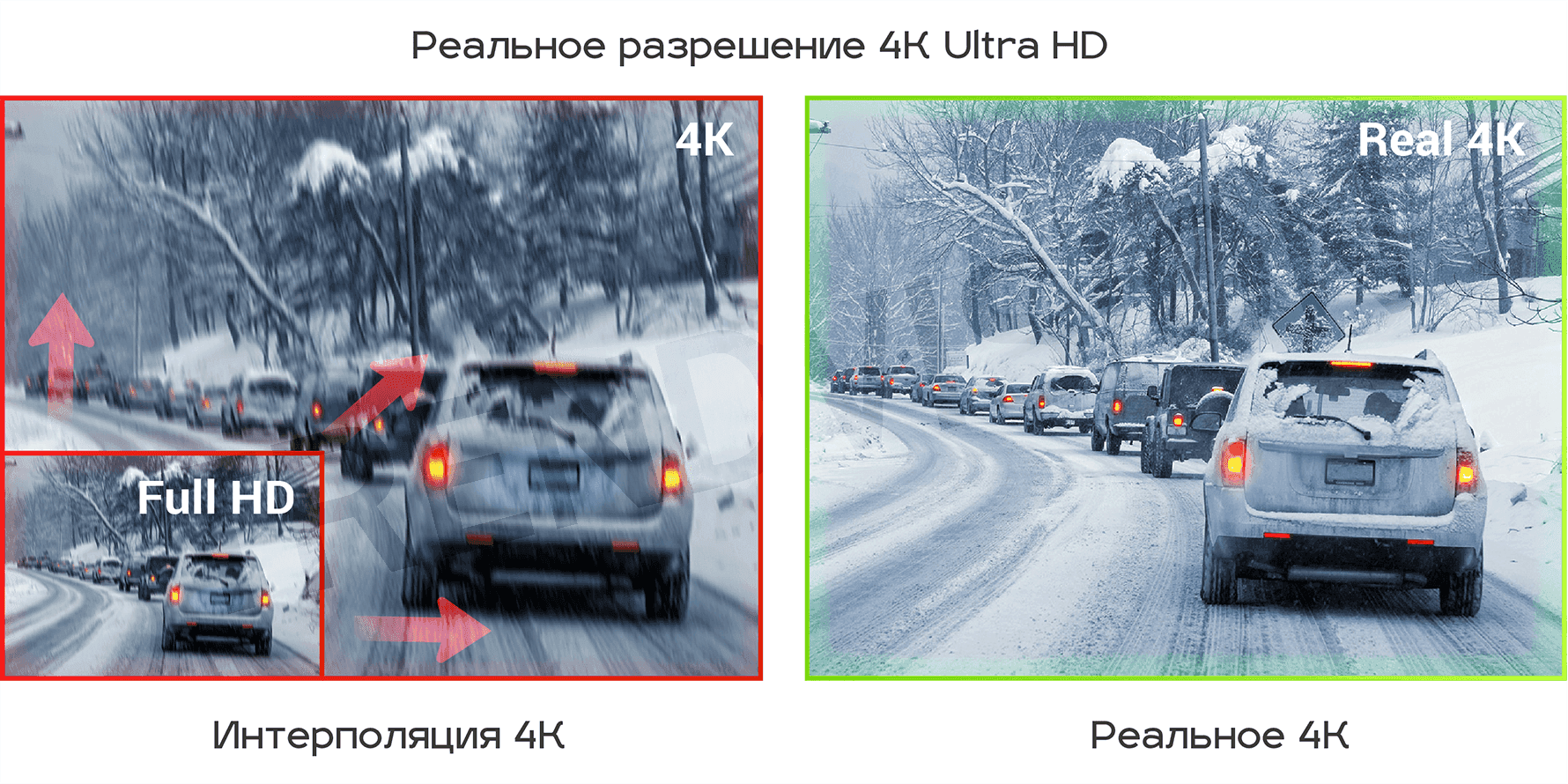 - Не интерполированное, реальное разрешение видео 4К Ultra HD