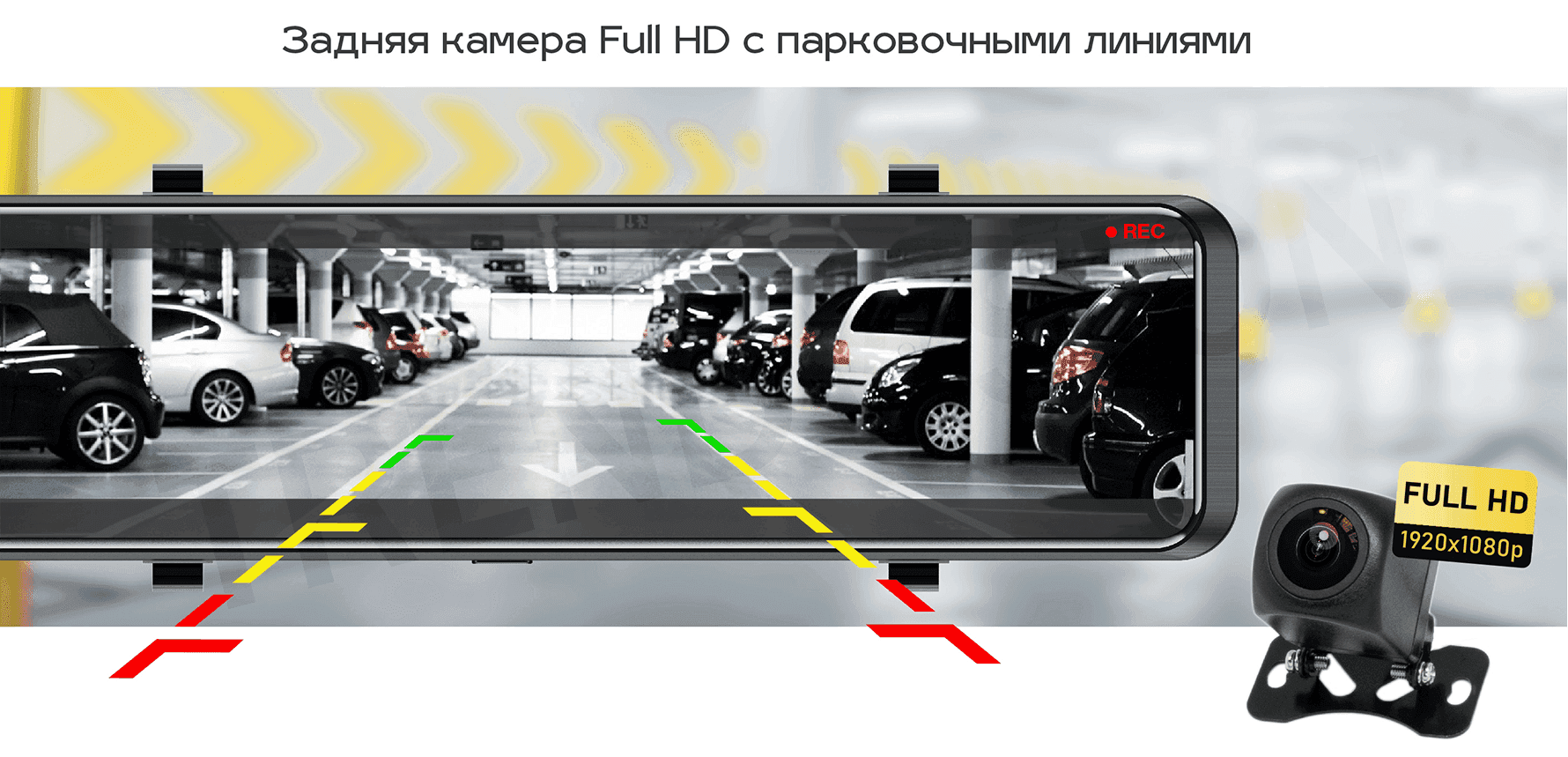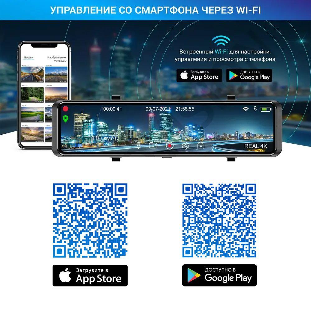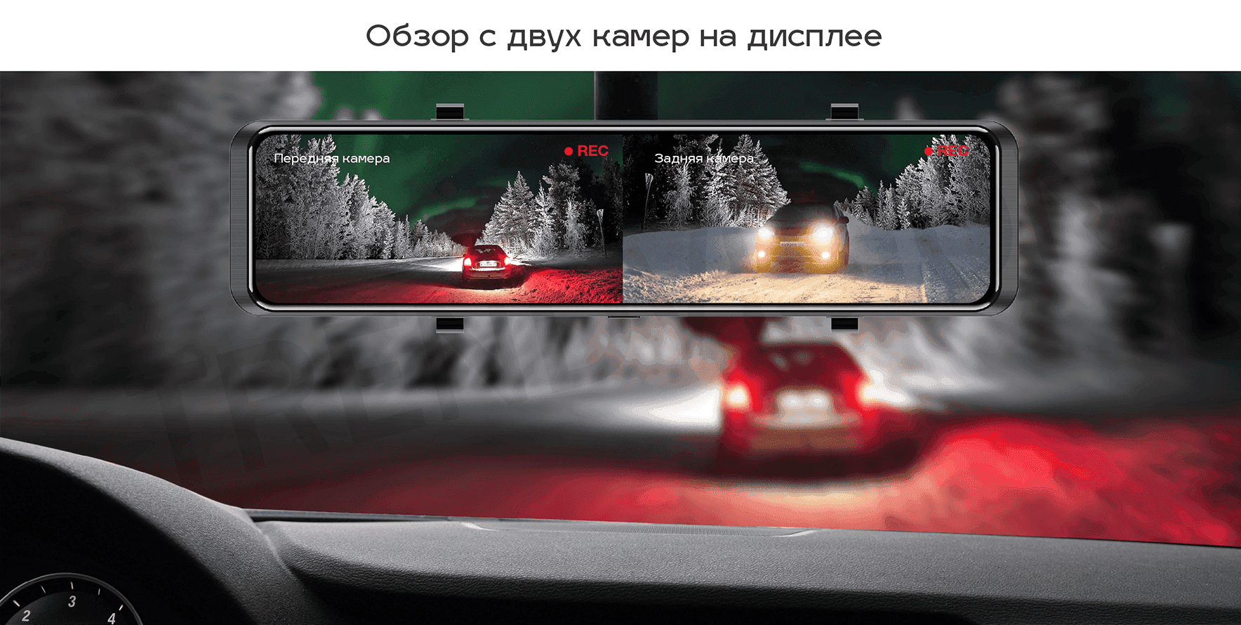 Автомобильный видеорегистратор в форме зеркала с двумя камерами (Real 2K Quad HD + Full HD), автономным режимом парковки и управлением через смартфон