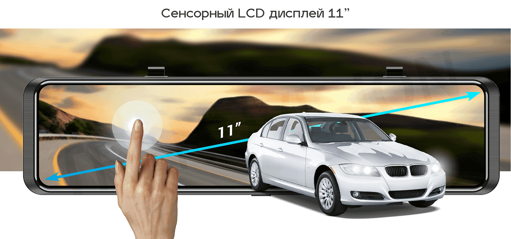 - Сенсорный экран 11", на котором можно производить настройки, просматривать видео и получать полезную информацию для безопасной езды