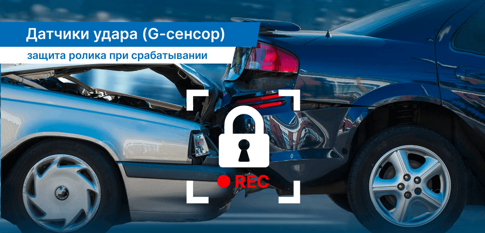 - Датчик удара (G-сенсор) для сохранения видеоролика от перезаписи при любом резком изменении скорости автомобиля (в т.ч. при столкновении)