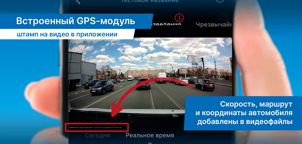 Фиксирует скорость, маршрут и координаты автомобиля, а также добавляет эти данные в файлы видеозаписи, что может быть использовано как доказательство в случае ДТП.