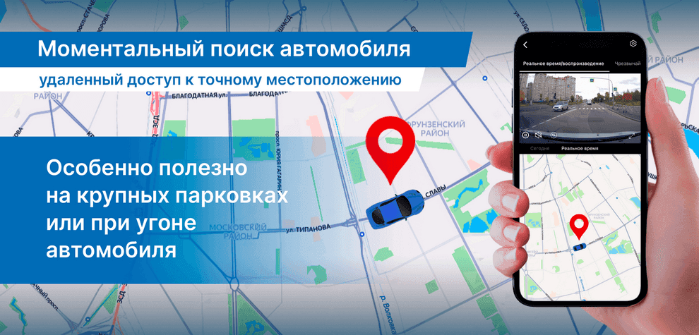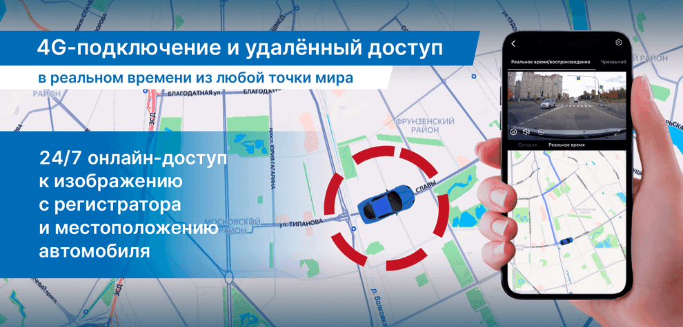Позволяет получать онлайн-доступ к изображению с регистратора и его местоположению через мобильное приложение. Владелец может контролировать автомобиль из любой точки мира, просматривать видео в реальном времени и оперативно реагировать на происшествия.