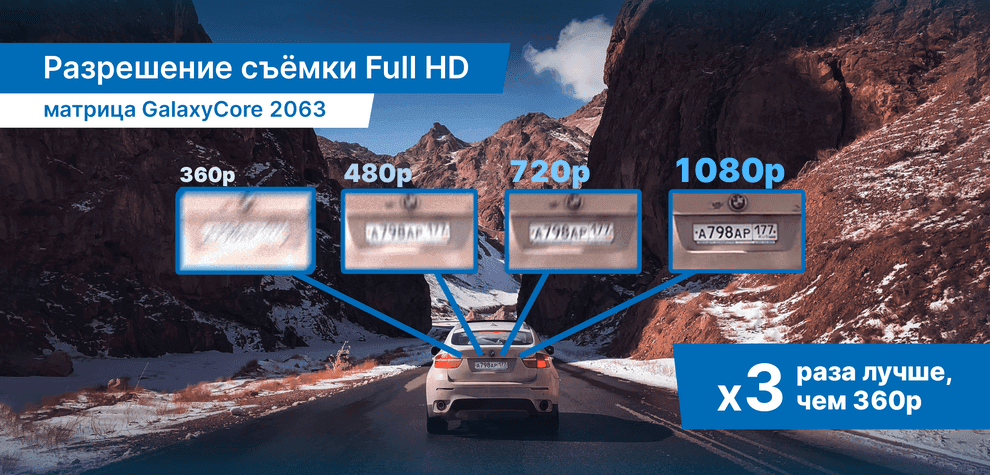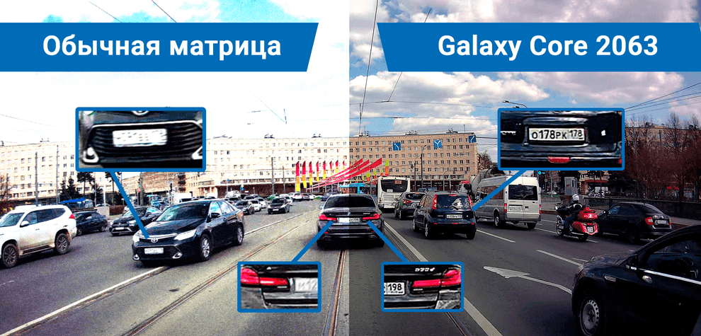 Матрица GalaxyCore обеспечивает высокое качество съёмки в Full HD даже при низком освещении. Все детали, включая номера автомобилей и дорожные знаки, остаются чёткими.