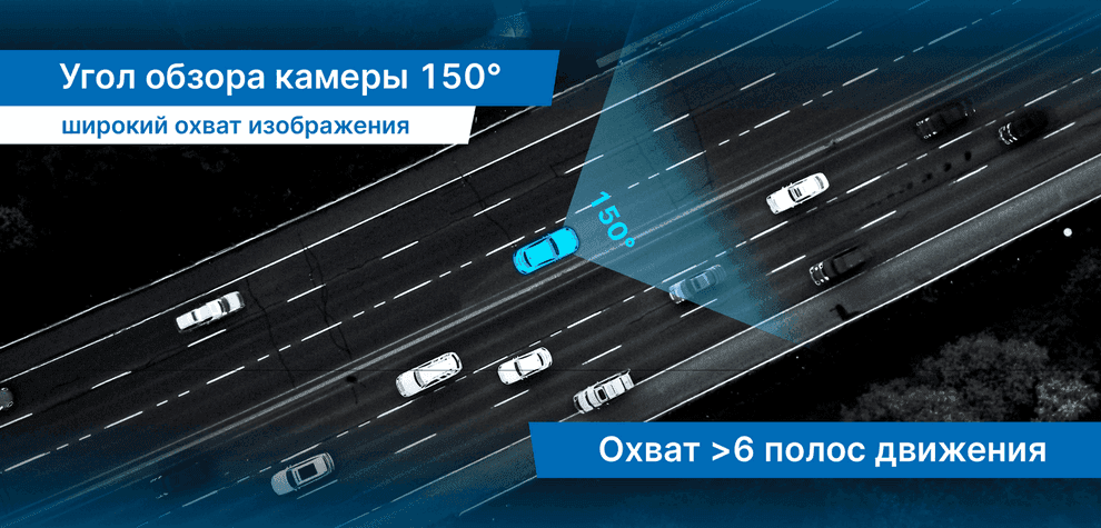 Угол обзора 150° у камеры обеспечивает съёмку всего, что происходит перед автомобилем.