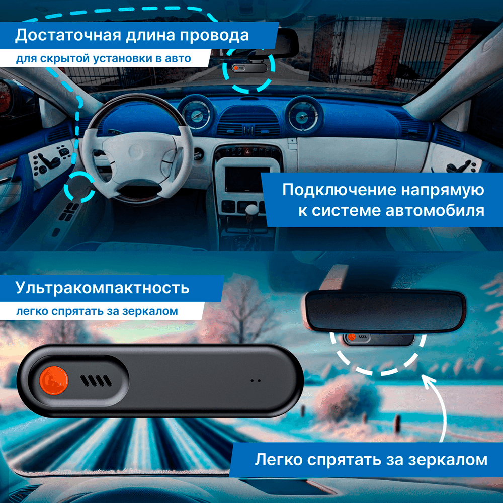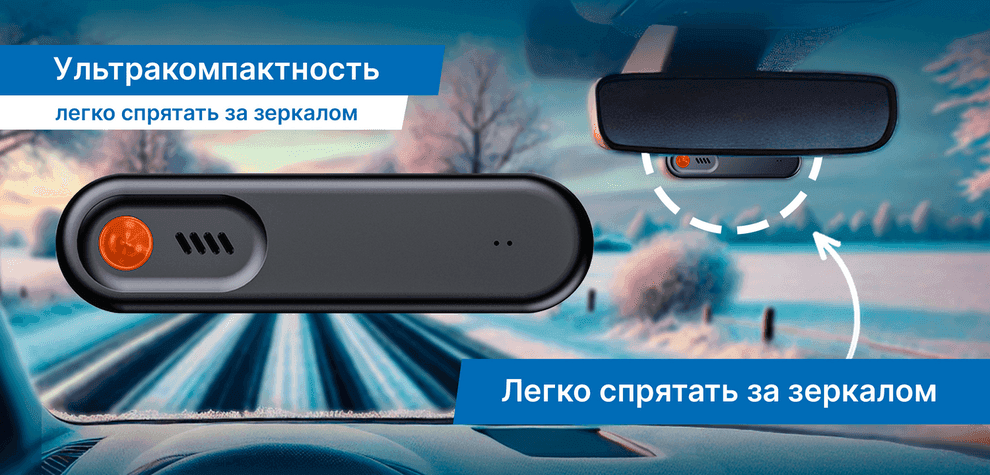 Минимальный размер устройства не мешает обзору водителя, его легко разместить в салоне без потери функциональности и удобства использования.