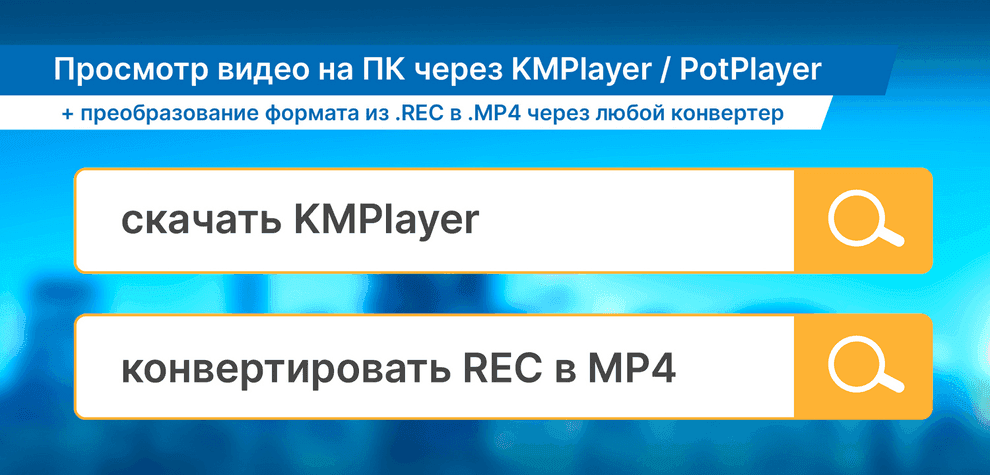 Для воспроизведения файлов на компьютере необходимо использовать специализированные видеоплееры (например, KMPlayer или PotPlayer). Для преобразование видеофайла с расширением .rec в другие форматы (.avi, .mp4 и др) можно воспользоваться бесплатными онлайн-приложениями для конвертации видео (например, video-converter.com) (не является рекомендацией!)