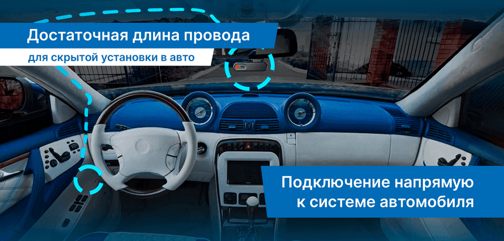 Возможность установки проводов регистратора скрытно (под обшивкой и стойками автомобиля) обеспечивает опрятный внешний вид салона и исключает провода перед лобовым стеклом, мешающие обзору дороги.
