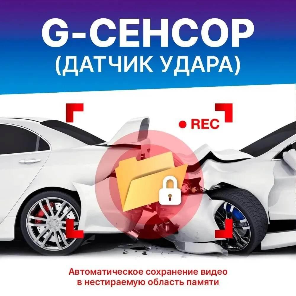 Благодаря встроенным датчикам движения и удара, устройство сразу сохранит записанные видеофайлы в защищенной области карты памяти, при даже малейшем воздействии на автомобиль. Тем самым окажет помощь как в режиме парковки, так и в случае ДТП на дороге.