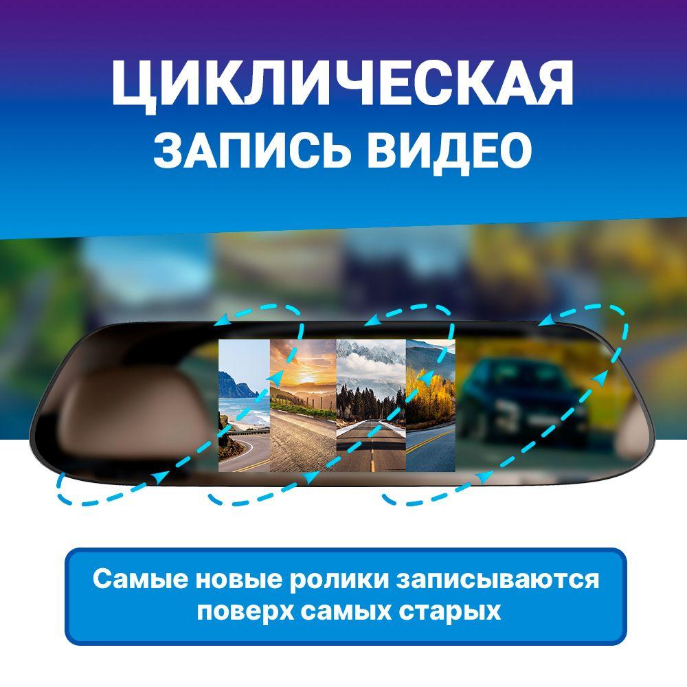 Компактный Full HD видеорегистратор-зеркало с ассистентом парковки. Задняя камера в комплекте