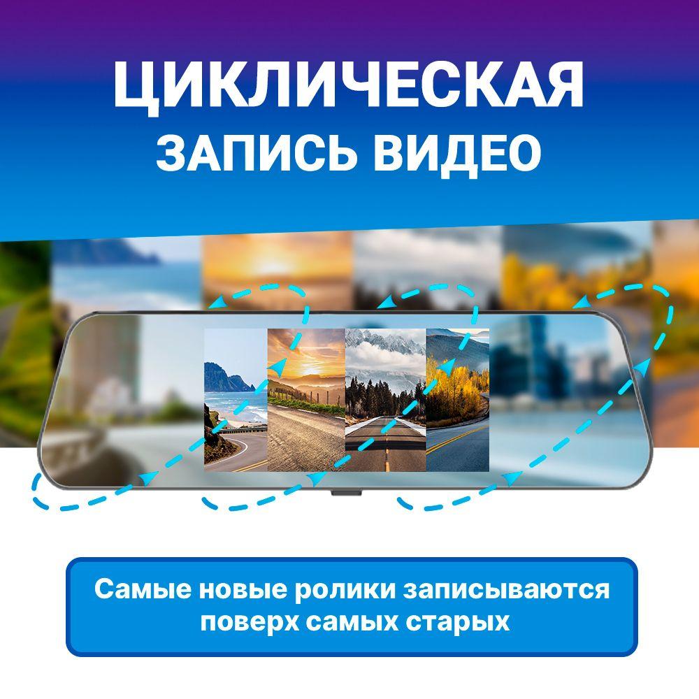 Компактный Full HD видеорегистратор-зеркало с ассистентом парковки. Задняя камера в комплекте