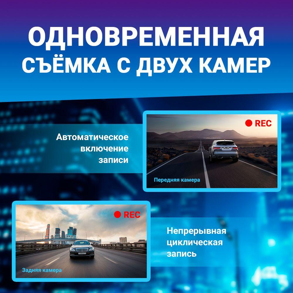 Компактный Full HD видеорегистратор-зеркало с ассистентом парковки и сенсорным IPS дисплеем. Задняя камера в комплекте