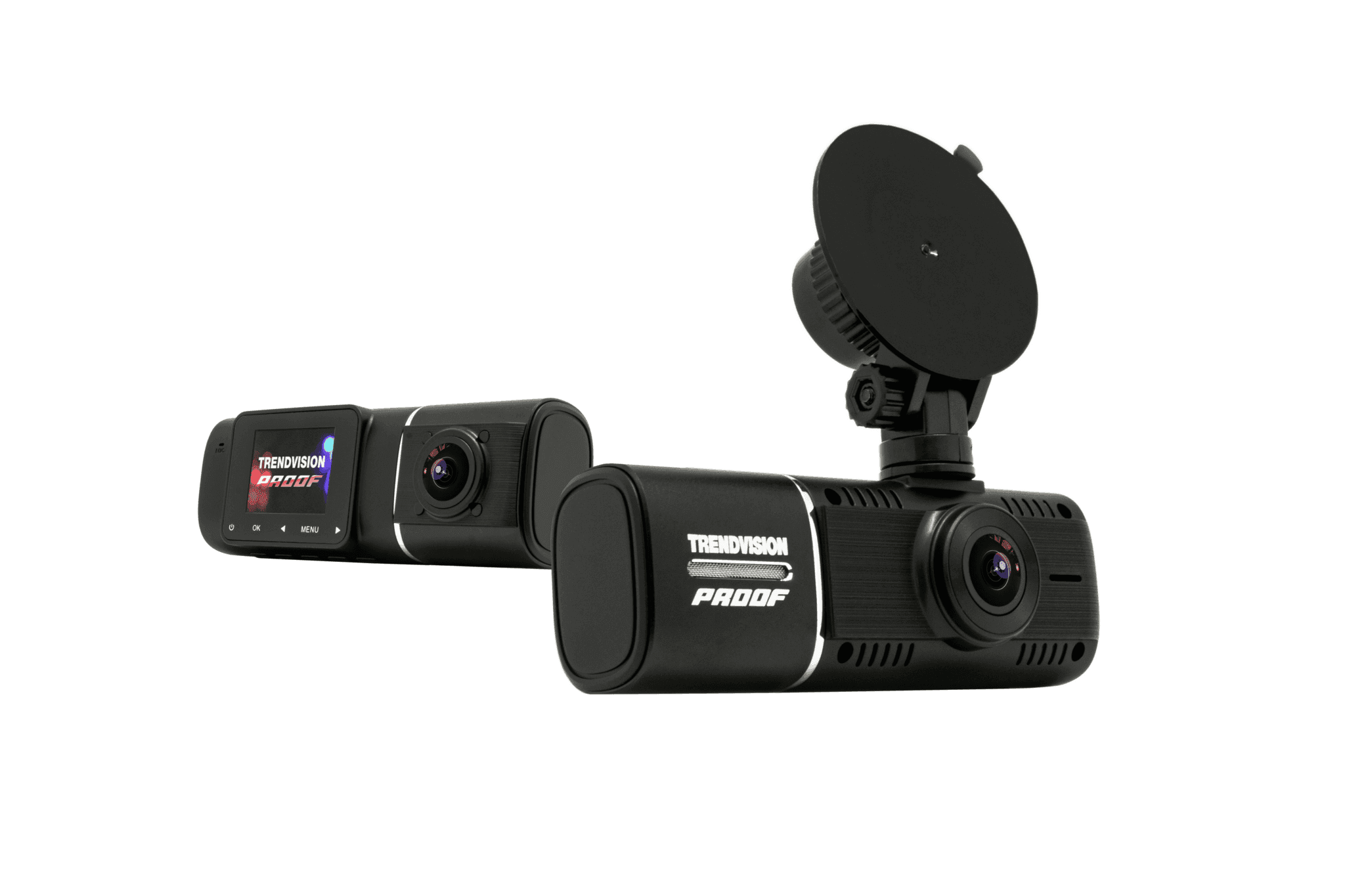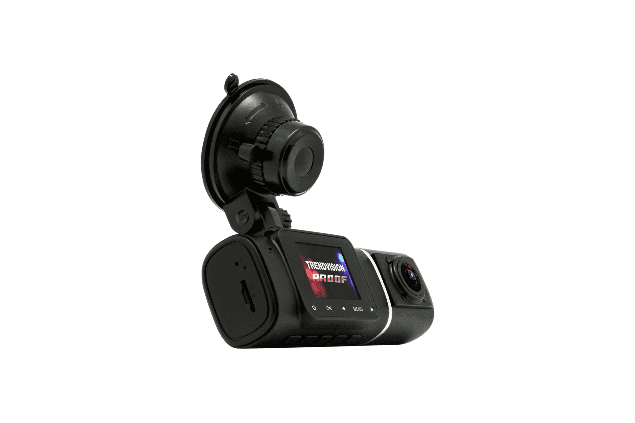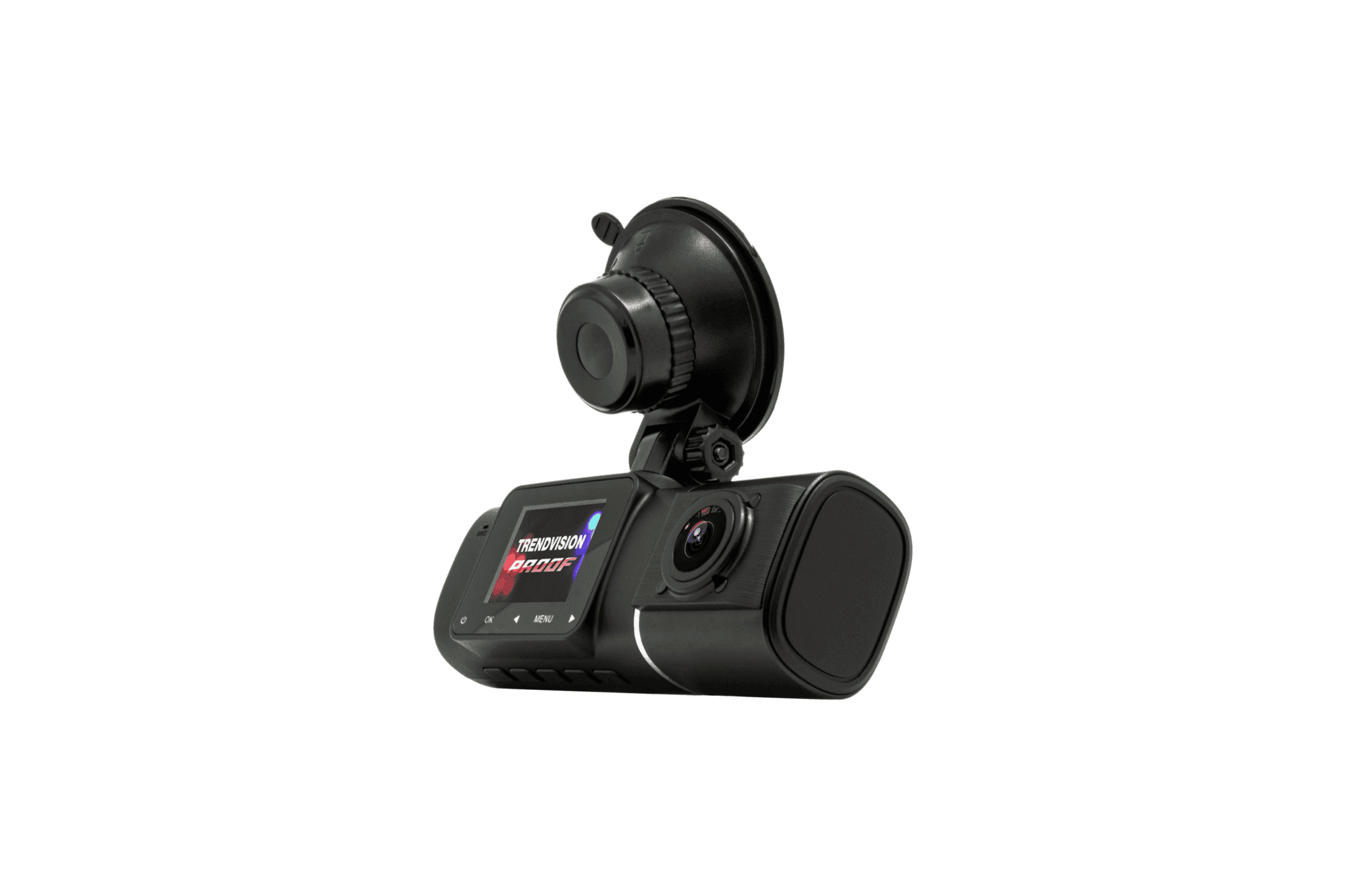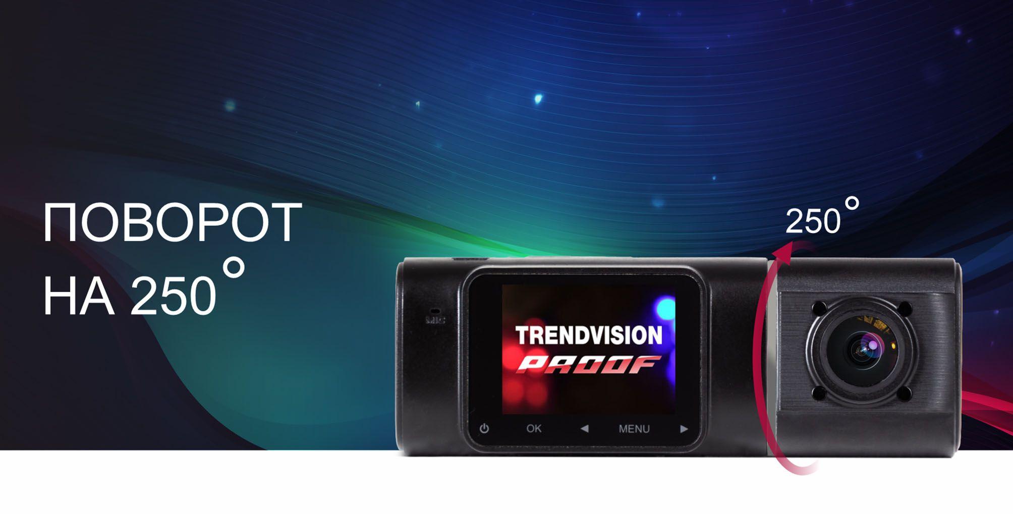 Основным преимуществом модели TrendVision Proof является уникальная конструкция - корпус с поворотной на 250 градусов второй камерой. Такое строение позволяет с высоким качеством зафиксировать происходящее как внутри автомобиля, так и перед ним.