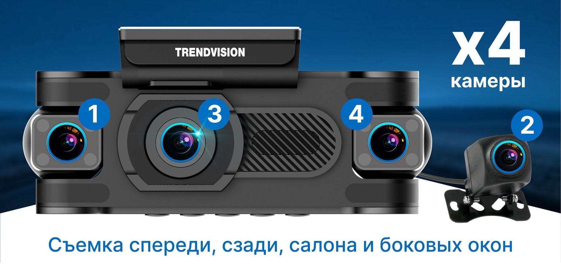 TrendVision Proof 360 GPS – видеорегистратор, который обеспечивает съемку со всех сторон, снаружи и внутри автомобиля. Происходит это за счёт 4-х камер (3 камеры в корпусе + 1 задняя камера). Салонные боковые камеры вращаются на 180° и имеет 8 ИК-светодиода – это позволяет вести улучшенную ночную съёмку в салоне автомобиля. GPS-модуль, автоматически определяющий дату, время, скорость и координаты - в комплекте, встроен в АЗУ. Просматривать видео можно прямо на смартфоне.