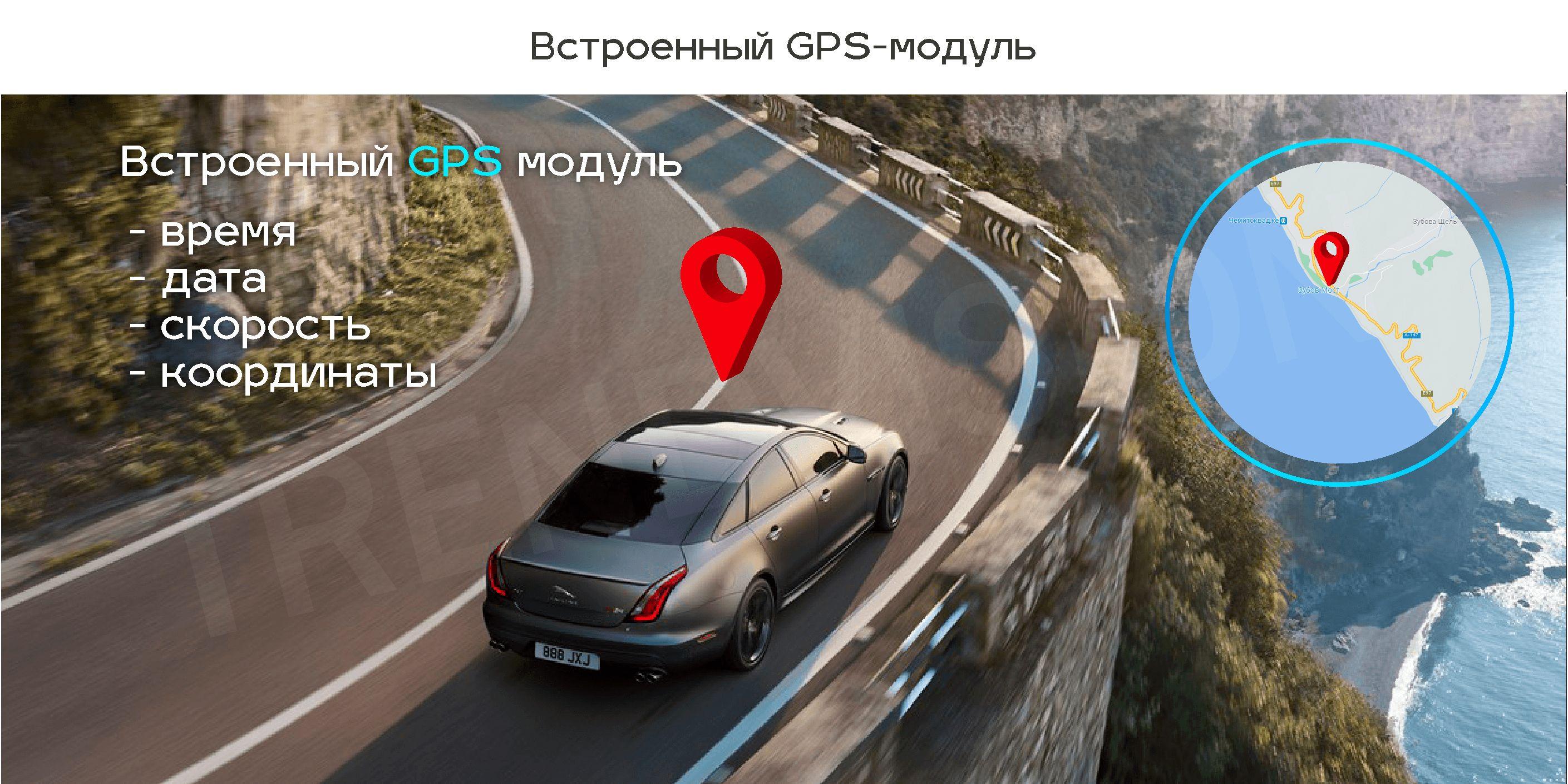 - GPS-модуль, автоматически определяющий дату, время, скорость и координаты