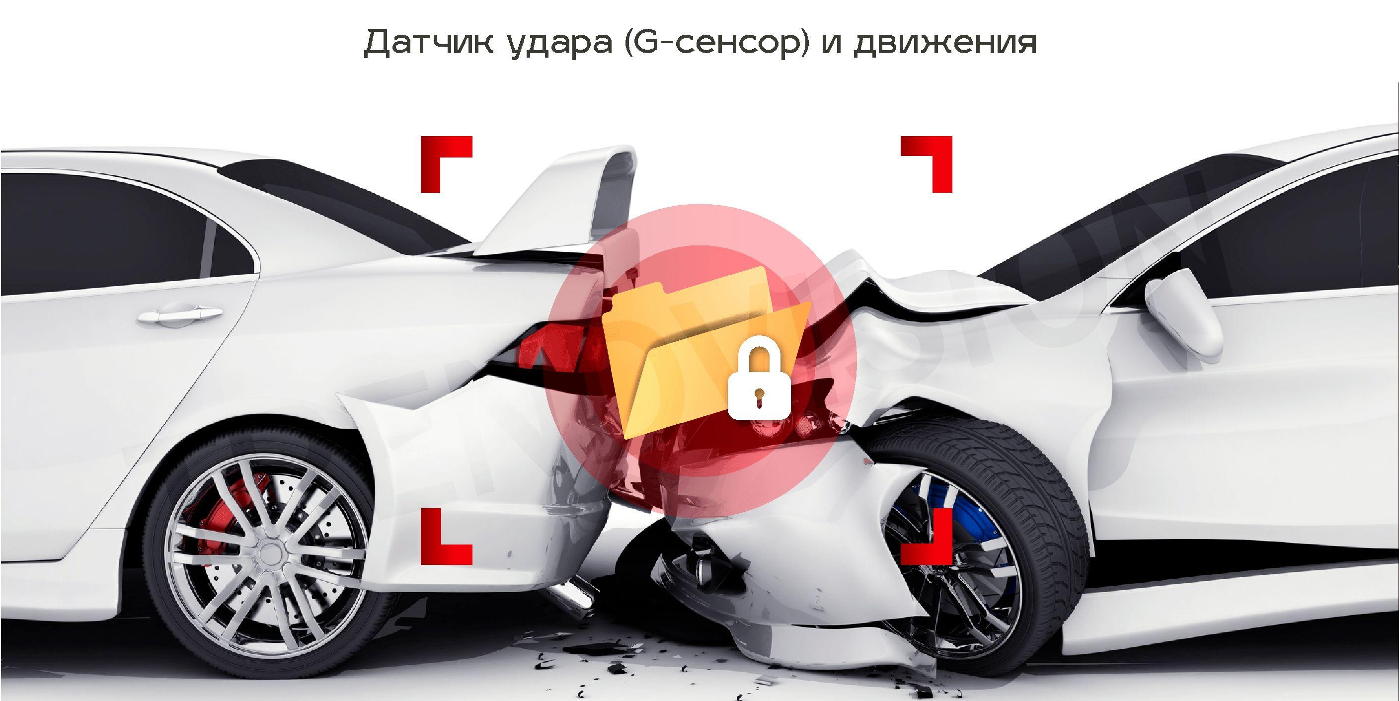 Благодаря встроенным датчикам движения и удара, устройство сразу сохранит записанные видеофайлы в защищенной области карты памяти, при даже малейшем воздействии на автомобиль. Тем самым окажет помощь как в режиме парковки, так и в случае ДТП на дороге.