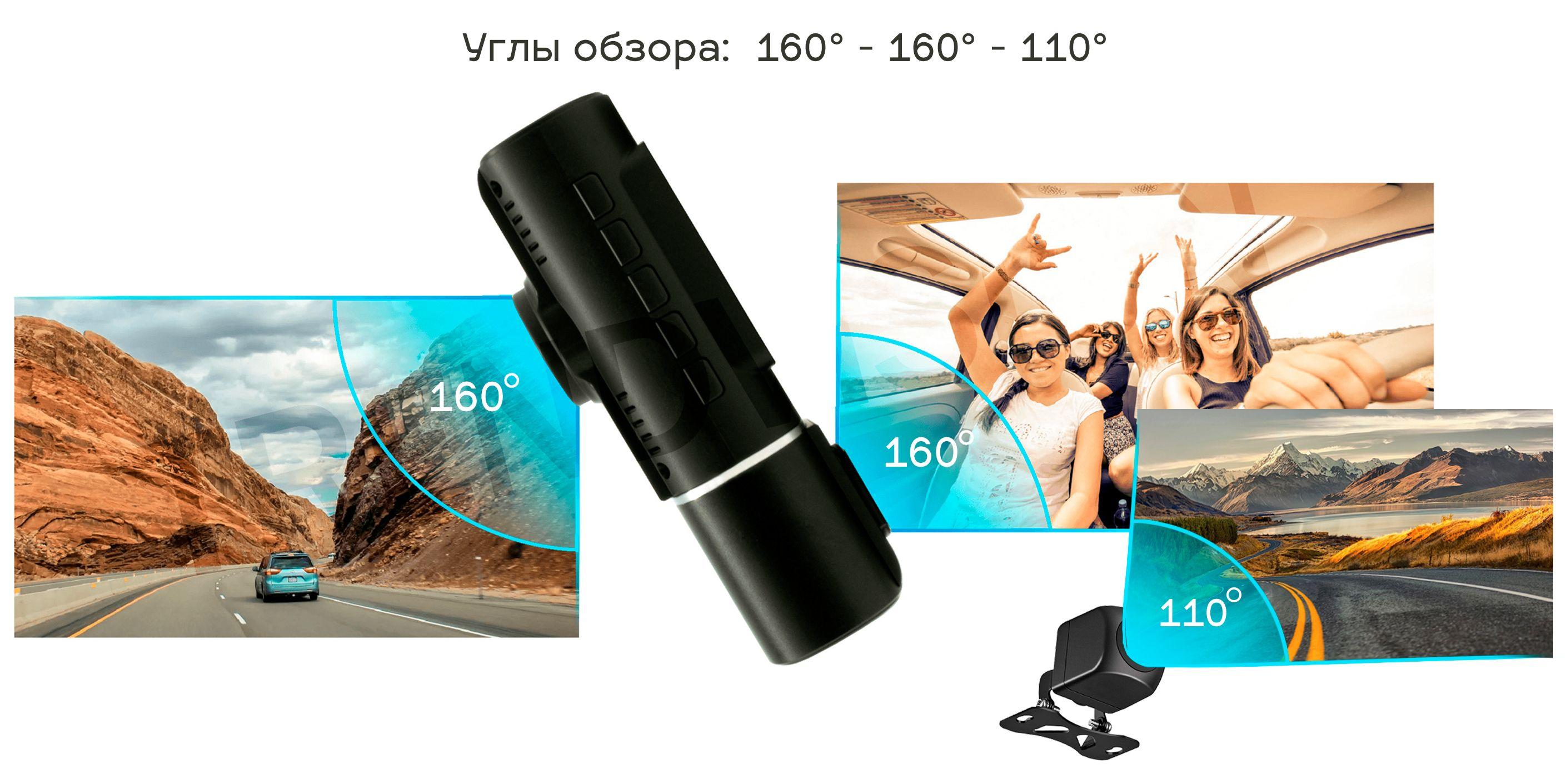 - Широкие углы обзора камер (160° + 160° + 110°)