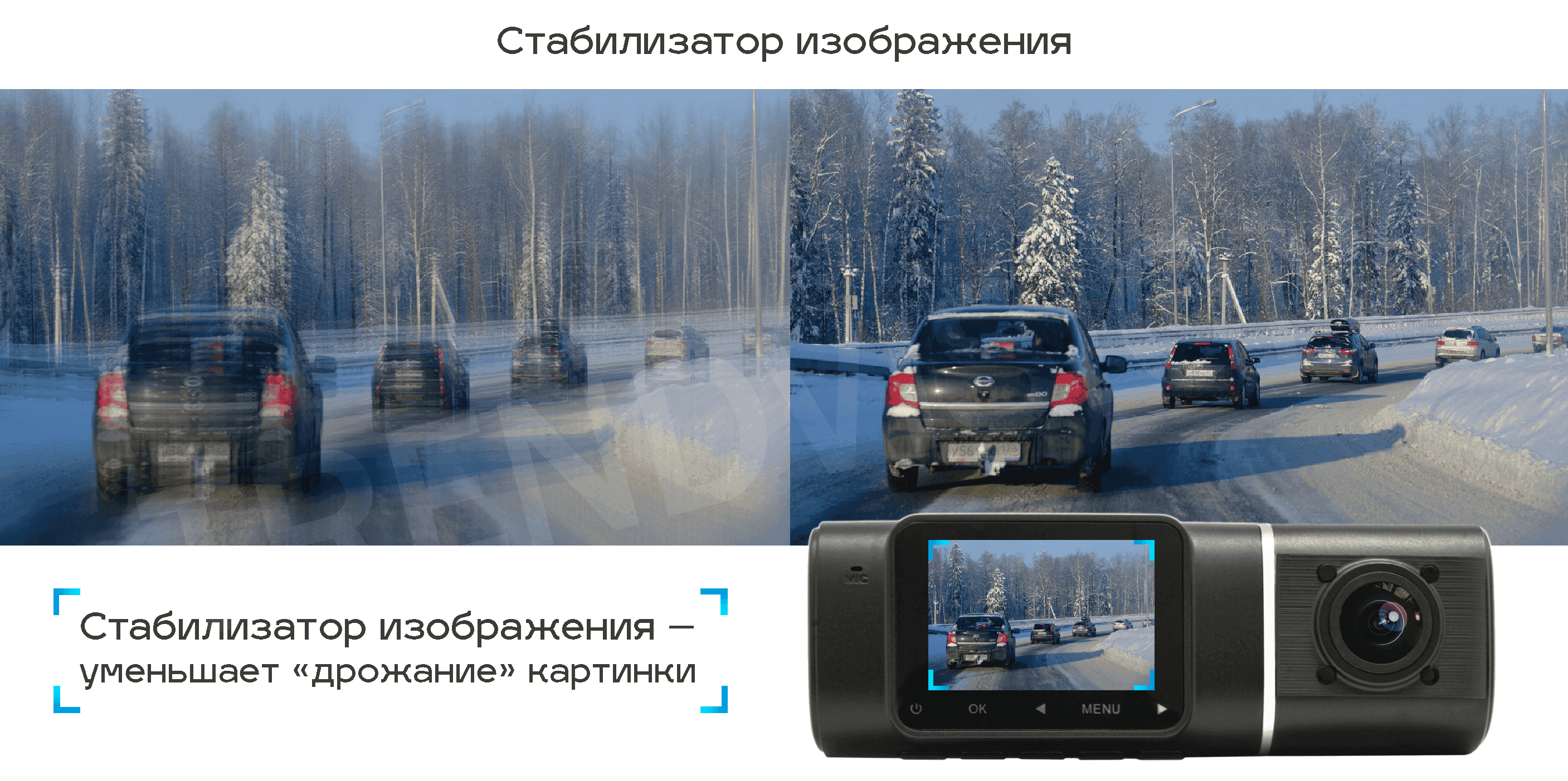 - Стабилизатор изображения, нейтрализующий «дрожание» кадра при движении автомобиля