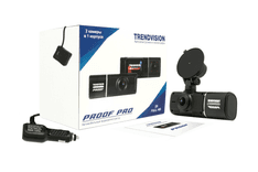 TrendVision Proof PRO GPS – автомобильный видеорегистратор с двумя Full HD камерами в одном компактном корпусе. Одна из камер вращается на 250° и имеет 4 ИК-светодиода – это позволяет вести съёмку одновременно как дороги перед машиной, так и ситуации внутри салона, при любых условиях освещения. GPS-модуль, автоматически определяющий дату, время, скорость и координаты - в комплекте.