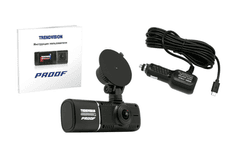 Основным преимуществом модели TrendVision Proof является уникальная конструкция - корпус с поворотной на 250 градусов второй камерой. Такое строение позволяет с высоким качеством зафиксировать происходящее как внутри автомобиля, так и перед ним.