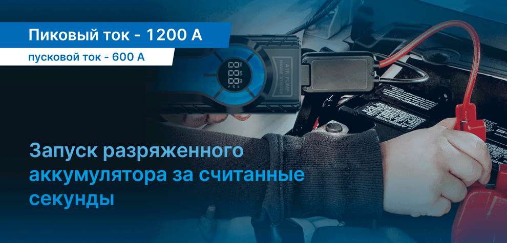 С пиковым током в 1200 А и пусковым током в 600 А, это устройство обладает всем необходимым для запуска автомобиля в экстремальных условиях, включая низкие температуры, когда аккумуляторная батарея активно теряет емкость.