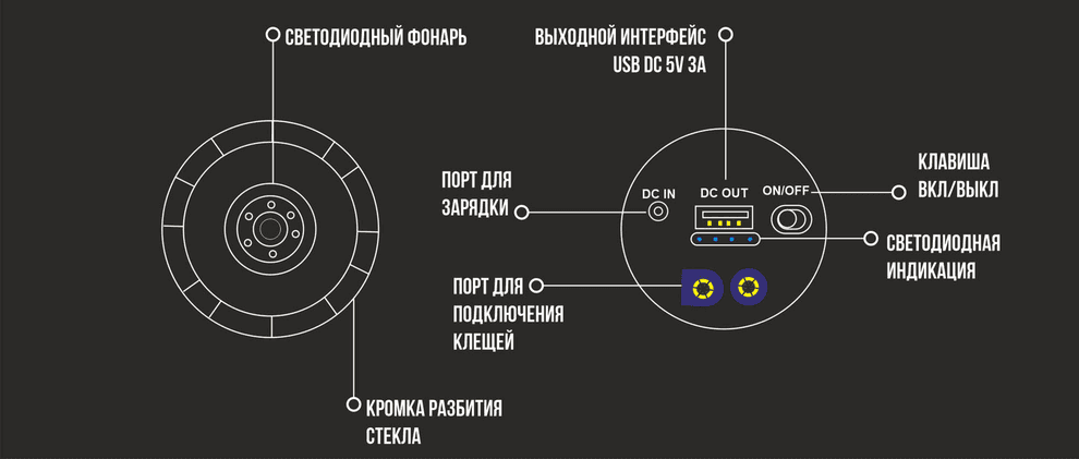 Кромка металлического корпуса фонаря спроектирована таким образом для разбития стекла в экстренной ситуации.