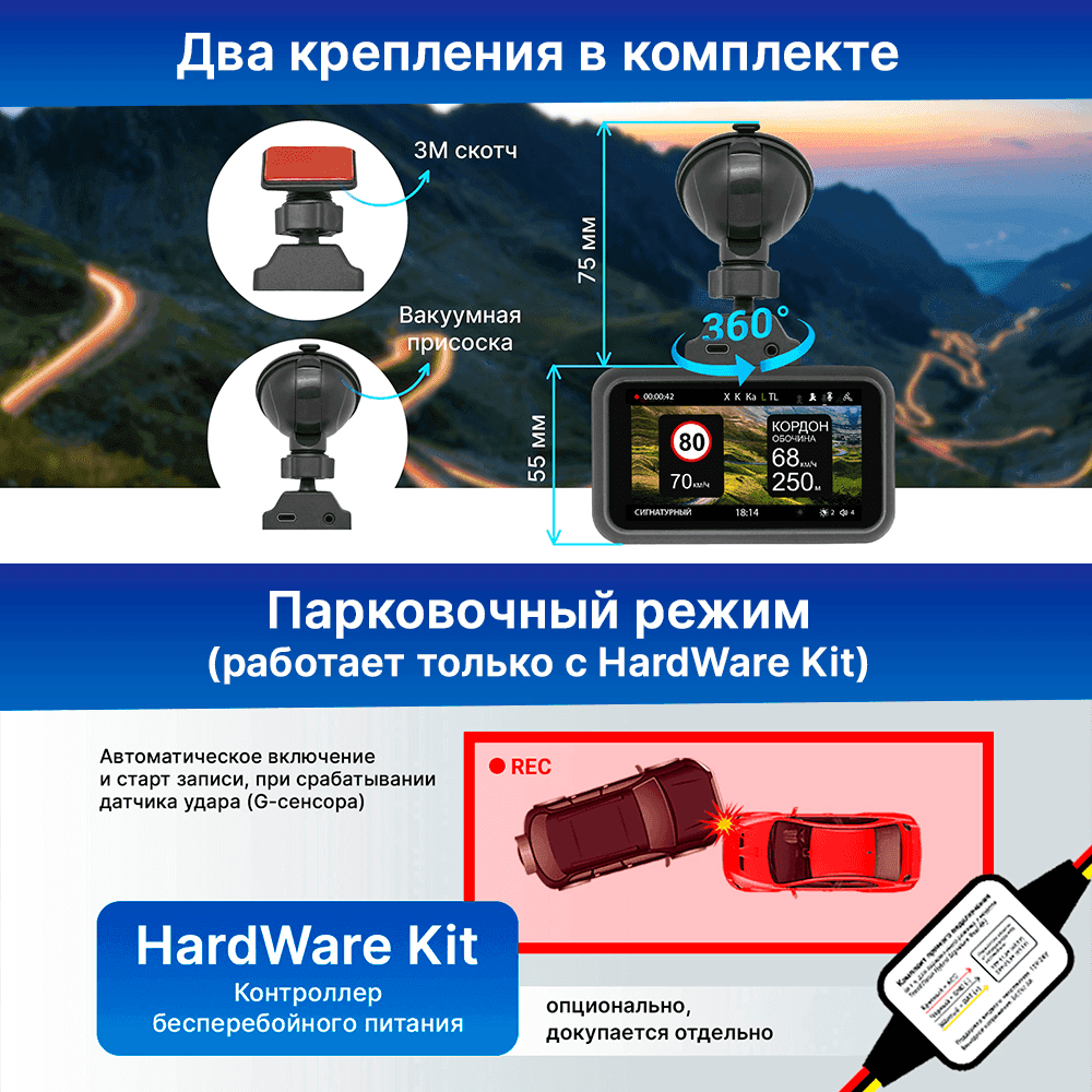 - TrendVision TDR-725 Real 4K Max: с TrendVision HardWare Kit в комплекте