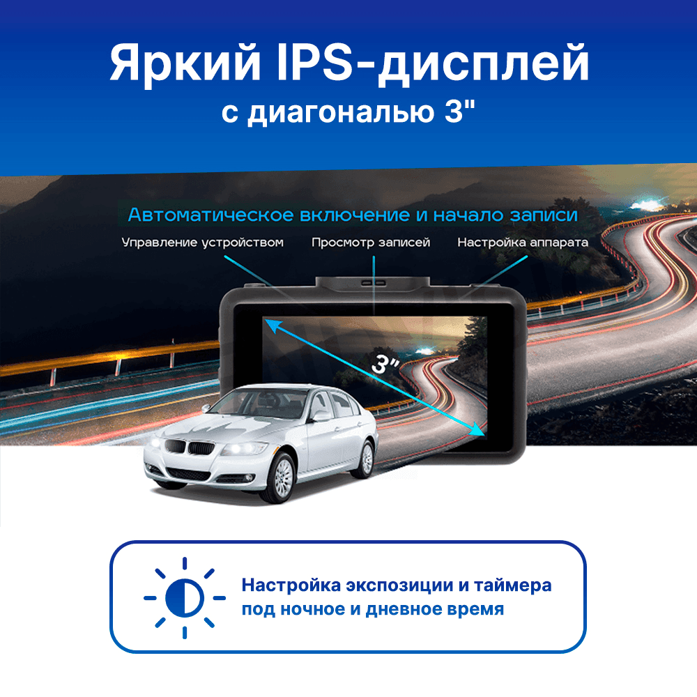- Настройка, управление и просмотр видео как на сенсорном 3" IPS дисплее устройства, так и на смартфоне - через мобильное приложение (благодаря встроенному Wi-Fi);