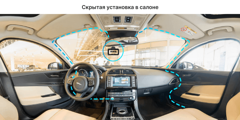 Провод питания крепится прямо к кронштейну, обеспечивая устройству сквозное питание. За счёт этого и оптимальной длины проводов есть возможность скрытно провести их по скрытым областям автомобиля (под обшивкой, стойкой и т.д.). Таким образом само комбо-устройство и GPS-модуль будут выглядеть в машине как штатные.
