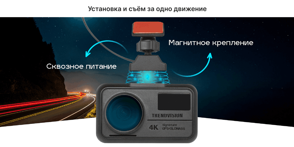 Благодаря магнитному креплению надежно установить и легко снять видеорегистратор можно одним движением руки. Благодаря этому, все лишние провода от кронштейна можно спрятать под обшивкой автомобиля и забыть о них. При подключении питания, устройство автоматически включится и начнёт запись - никаких лишних действий.