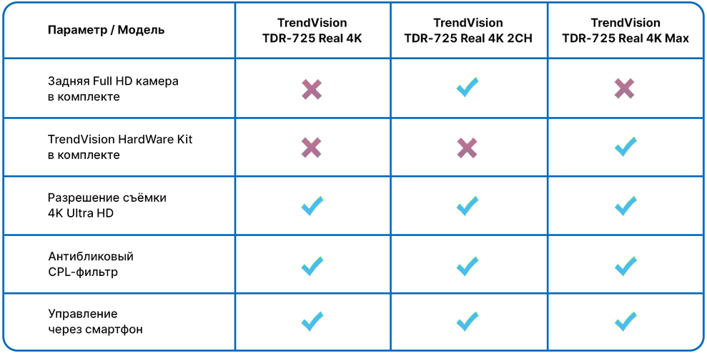 Линейка видеорегистраторов TrendVision TDR-725 Real 4K: отличия модельного ряда