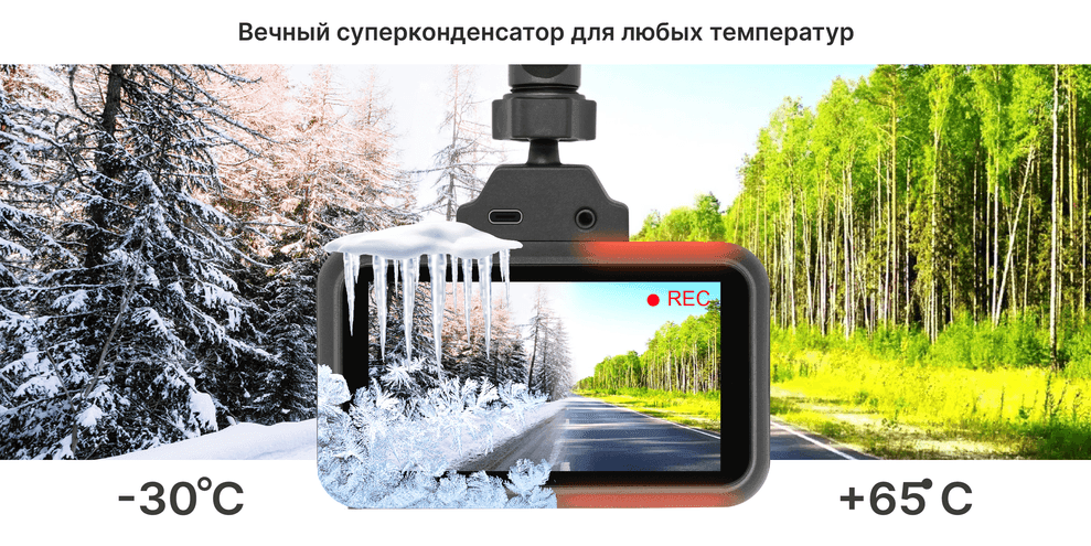 Вместо стандартного литиевого аккумулятора в TrendVision TDR-725 Real 4K Max установлен суперконденсатор. Он стабильно выдерживает гораздо больший разброс температур, имеет высокие токи нагрузки, а также гораздо более безопасен (исключает перегрев, взрыв, сбои питания). У суперконденсатора практически неограниченный жизненный цикл – он может быть перезаряжен миллионы раз.