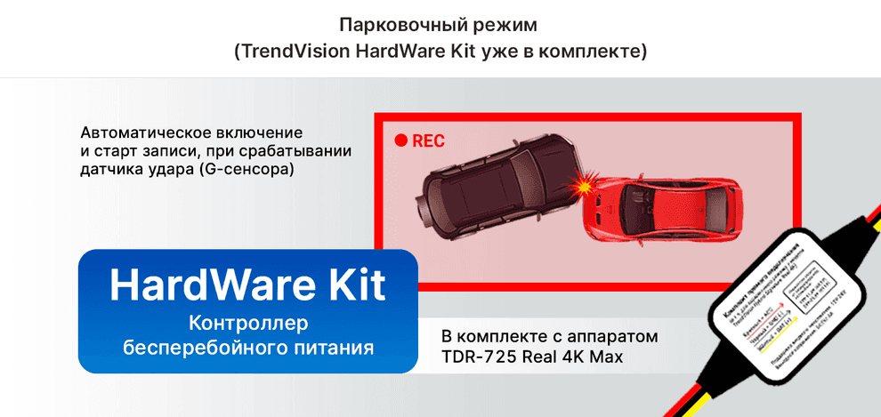 - TrendVision TDR-725 Real 4K Max: с TrendVision HardWare Kit в комплекте