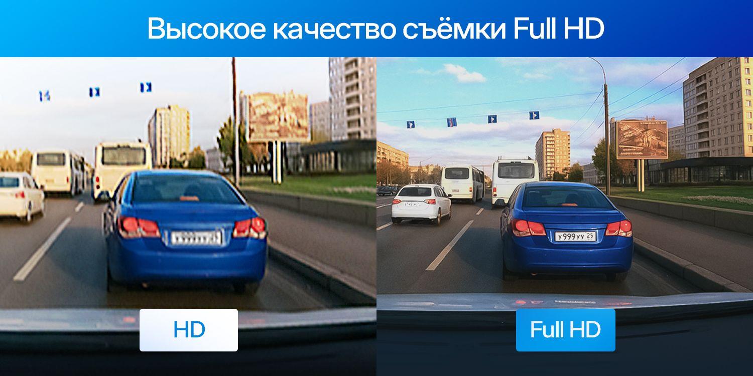 Несмотря на небольшие габариты, видеорегистратор обеспечивает запись в формате Full HD (1920×1080p) 30 к/с. Такое качество позволяет чётко различать номерные знаки встречных и попутных автомобилей, дорожные указатели и разметку, фиксируя все важные детали происходящего на дороге.