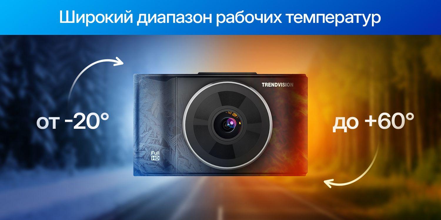 Конструкция видеорегистратора и тщательно подобранные комплектующие обеспечивают стабильную работу устройства даже при очень низких и крайне высоких температурах. Аппарат не даёт сбоев и сохраняет надёжность в любых климатических условиях.