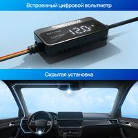 Встроенный цифровой вольтметр в режиме реального времени отображает напряжение бортовой сети автомобиля. Это позволяет наглядно контролировать состояние аккумулятора, корректно настраивать пороги отключения питания и быть уверенным, что видеорегистратор работает безопасно, не создавая риска разряда АКБ.