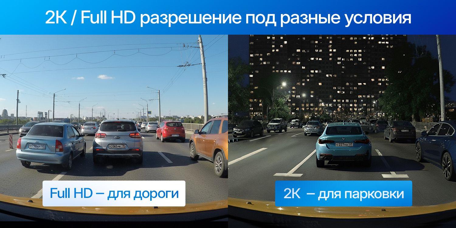 - Разрешение съёмки для разных условий: Full HD - для дороги, 2К Quad HD (интерполяция) - для парковки