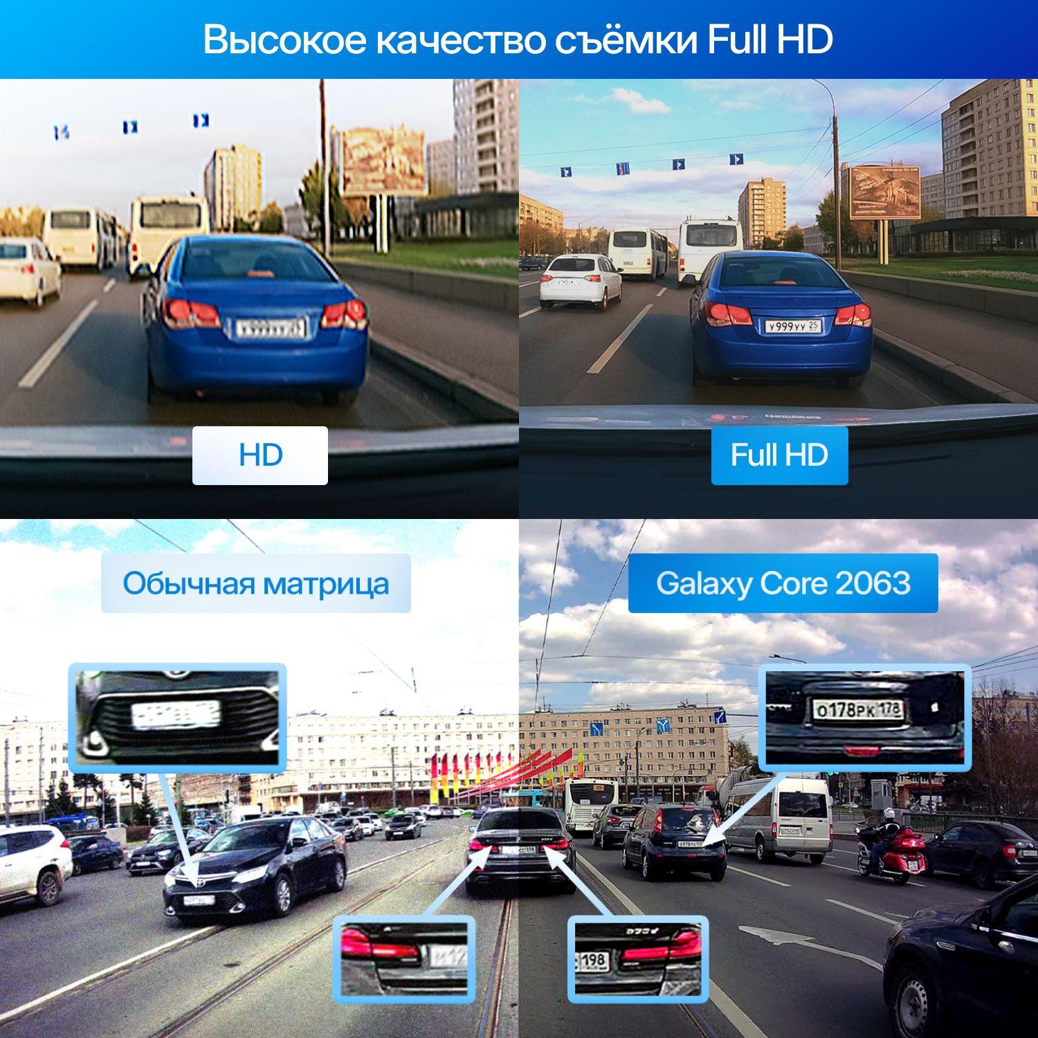 Матрица GalaxyCore обеспечивает высокое качество съёмки в Full HD даже при низком освещении. Все детали, включая номера автомобилей и дорожные знаки, остаются чёткими.
