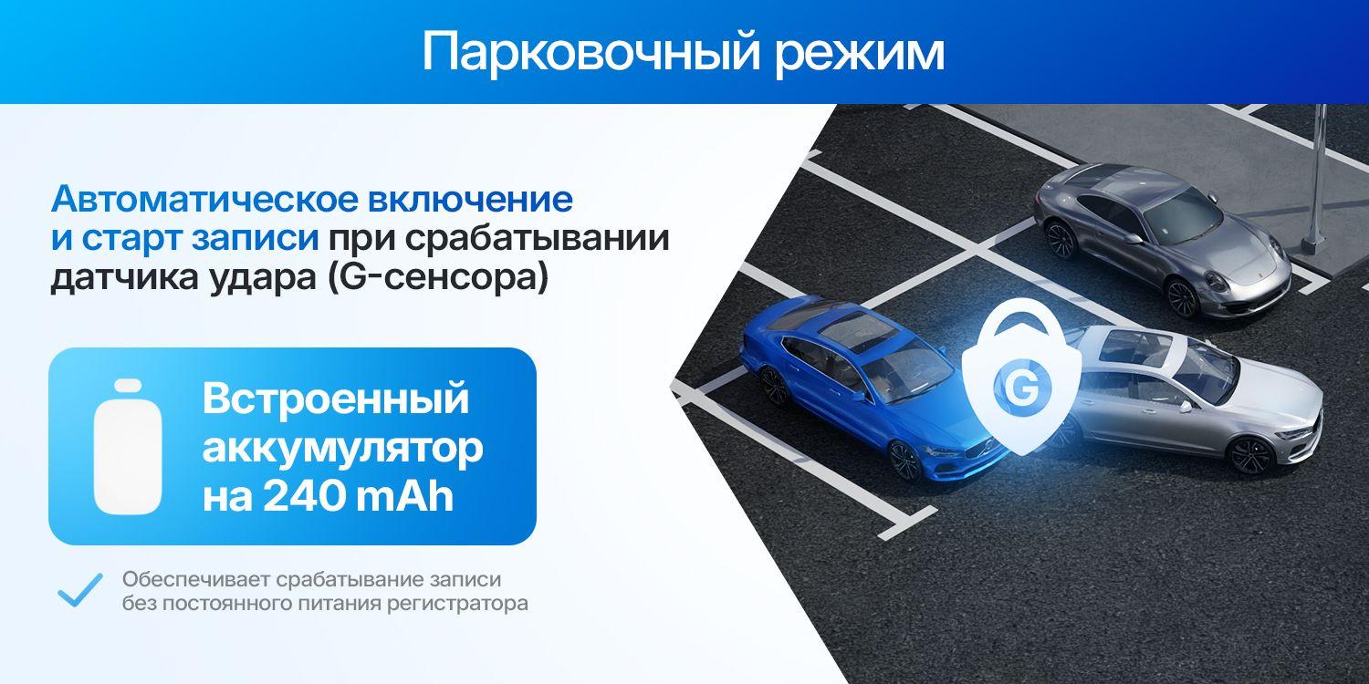 Защита при ДТП: G-сенсор, датчик движения, парковочный режим.